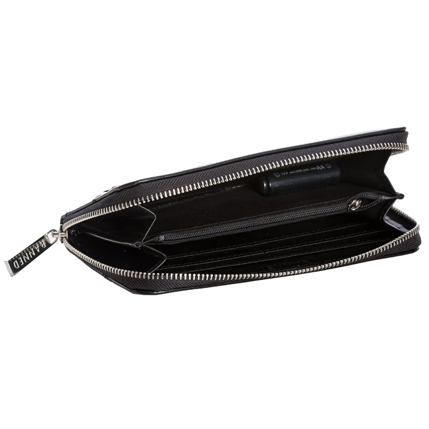 Le design est encore accentué par des détails corset-lacés avec œillets métalliques, qui renforcent l’allure sombre et élégante de ce portefeuille. Doté d’une fermeture éclair robuste, il protège vos essentiels tout en affichant un look rebelle et raffiné.